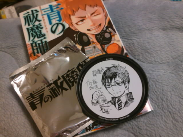 新刊 『青の祓魔師』新刊が発売してたのでゲットです。6巻カバーは志摩くん。はぁ…、可愛いw志摩くん×(かけ)のカップリングってあるのかな?(笑)割と好きなので、とりあえず前でも後ろでもどっちでもいいので、ちょっと見てみたい(^w^)やっぱ双子カプのが多いのかなぁ? スパコミで探してみよう。有隣堂特典もギリギリゲットできました! 良かった…、あって……(^_^;)絵柄は雪男。はぅ〜、アニメが待ち遠しいね〜!